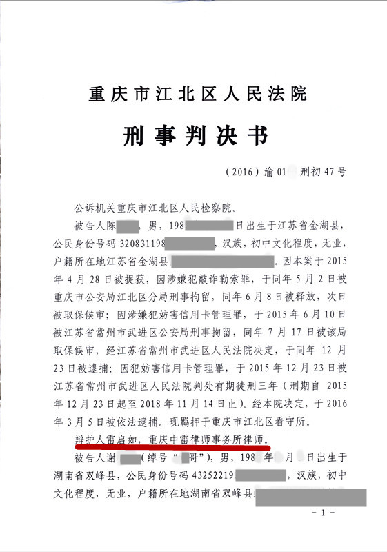 陈某,江苏人,2015年12月江苏一个基层法院以妨害信用卡管理罪(买卖银行卡18张)被判处有期徒刑3年,在监狱服刑期间,重庆市江北区人民检察院发现其漏罪(买卖银行卡7张),以同样的罪名起诉,后经律师庭上极力辩护和庭后沟通,江北区法院轻判有期徒刑8个月,合并执行3年零3个月,在法律规定不能判处缓刑的条件下,最终只给陈某加刑3个月,陈某当庭服判不上诉,家属也非常满意,陈某及其家属原来的预期至少加刑1-2年。