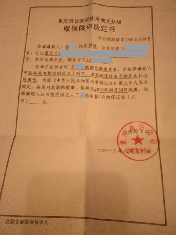 陈某涉嫌敲诈勒索,被沙坪坝区公安分局刑事拘留。陈某家属委托中雷所办理此案,律师介入此案后认为,被害人本身在打牌过程中打假牌存在过错,陈某及同伙强行要回被骗钱财,另外加上一定赔偿,我们认为敲诈勒索存在证据不足,成功为陈某取保。