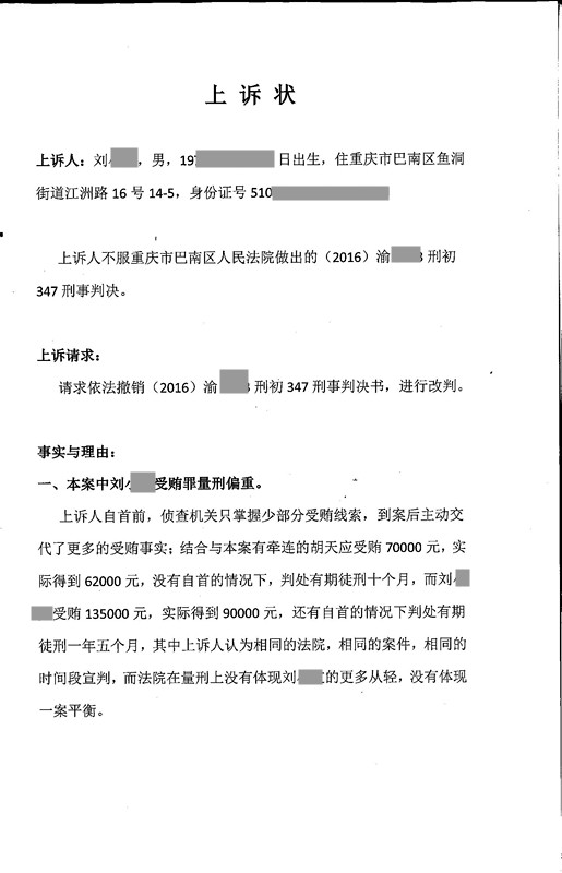 刘某某因涉嫌贪污贿赂罪,被巴南区人民法院一审判决有期徒刑一年五个月。刘某某不服判决,提起上诉。刘某某的家属经过慎重考虑,特意来到中雷所委托具有丰富的刑事辩护经验的雷主任律师代理此案。雷律师在对案件进行初步分析的基础之上,以案件中的事实争议和法律争议为切入点,来到重庆市人民检察院第五分院查阅本案的案卷材料。