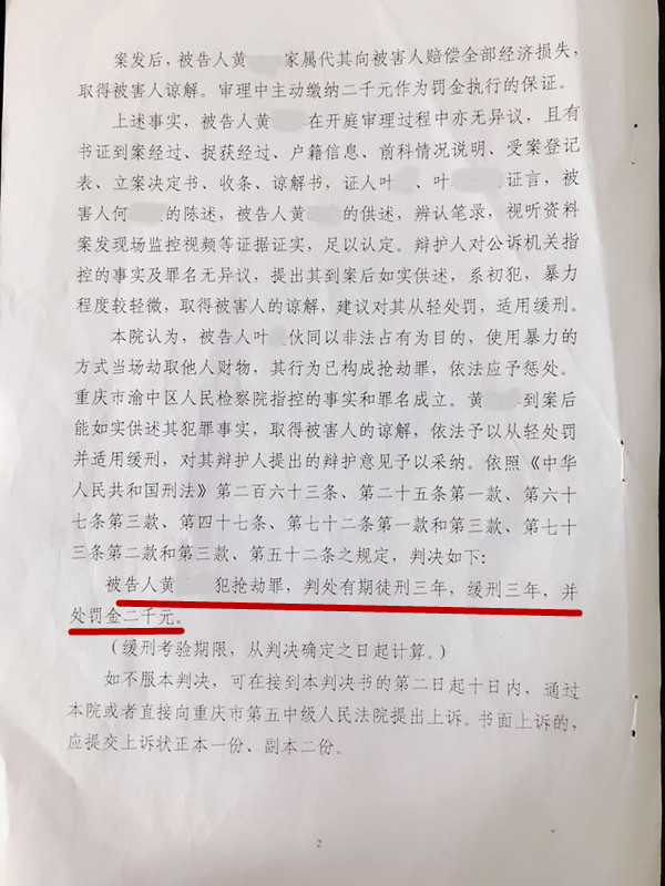 黄某伙同他人在人行地下通道附近设伏,抢走被害人挎包和现金被提起公诉。黄某的家属慕名前来中雷所,律师接收委托后在看守所多次会见黄某并且详细了解案件的情况。律师提出黄某系初犯,暴力程度轻微,有被害人谅解等情节,建议法庭适用缓刑被采纳。黄某及其家人对判决结果特别满意,对律师的辩护能力大为赞赏,辩护让黄某避免了至少3年的牢狱之灾。