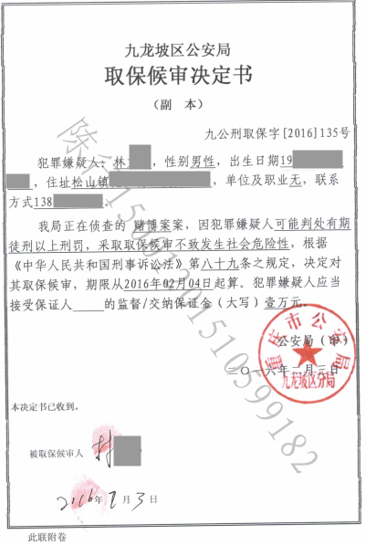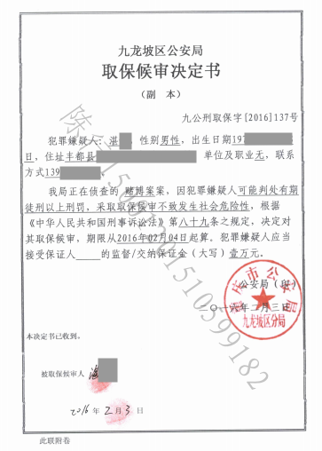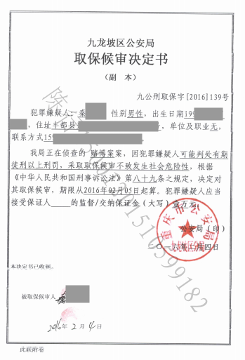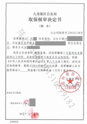 何某等近10人涉嫌开设赌场,涉案金额近千万,被九龙坡区公安分局刑事拘留。何某等5人家属经多方打听,认为中雷所具有专业的刑事辩护律师队伍,并且拥有丰富的刑事办案经验,特将案件委托中雷所办理。承办律师接受委托后,立即前往看守所会见。为了维护何某等人的合法权益,前往办案单位,与承办人进行沟通交流,最终办案单位采纳了承办律师的意见,成功为何某等5人办理取保。