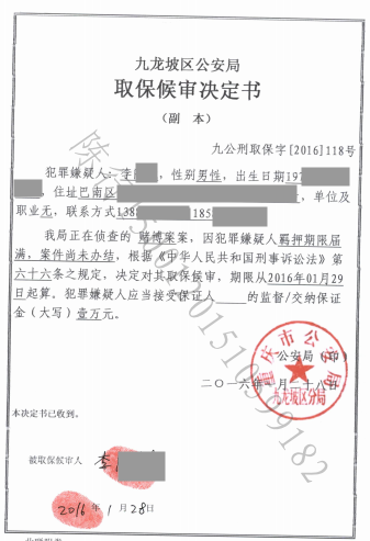 何某等近10人涉嫌开设赌场,涉案金额近千万,被九龙坡区公安分局刑事拘留。何某等5人家属经多方打听,认为中雷所具有专业的刑事辩护律师队伍,并且拥有丰富的刑事办案经验,特将案件委托中雷所办理。承办律师接受委托后,立即前往看守所会见。为了维护何某等人的合法权益,前往办案单位,与承办人进行沟通交流,最终办案单位采纳了承办律师的意见,成功为何某等5人办理取保。
